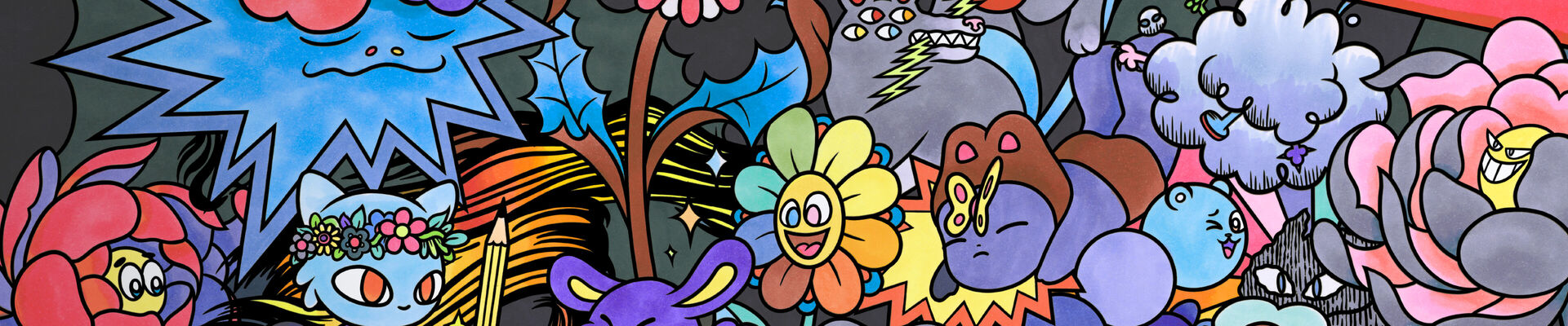 Adéntrate en un mundo de garabatos vibrantes y colores llamativos.