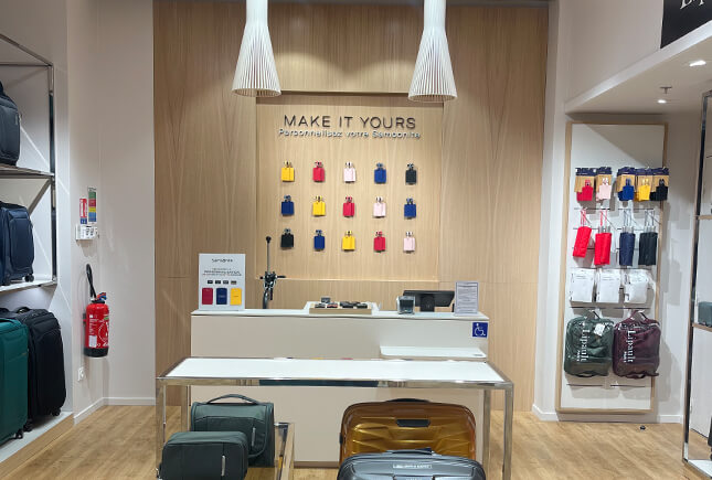 BIENVENUE DANS VOTRE BOUTIQUE SAMSONITE PARIS SAINT LAZARE La première étape de votre prochain voyage se passe avec nous à la boutique "Samsonite Saint Lazare". Nous vous aiderons à choisir la valise ou le sac le plus adapté à vos besoins, que vous pourrez personnaliser directement en boutique grâce à notre service de personnalisation. Nous proposons également une large gamme d'accessoires pour rendre votre voyage plus confortable. Pour toute demande de SAV depuis chez vous, nous vous invitons d'abord à vous rendre sur notre site dédié SUPPORTANDGO (supportandgo.com) avant de vous rendre en boutique.